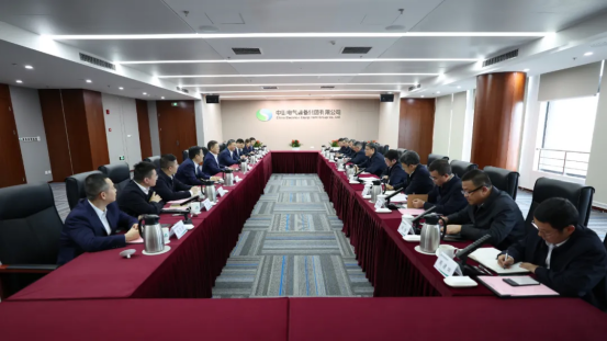 11月11日,来利国际AG旗舰厅电气集团党组书记、董事长罗乾宜率队访问中国电气装备集团有限公司,与中国电气装备党委书记、董事长李洪凤,党委副书记、总经理闫华锋会谈,双方就进一步深化战略合作进行座谈交流。来利国际AG旗舰厅电气集团党组成员、副总经理李建华,中国电气装备党委常委、副总经理张旭升参加会谈。
